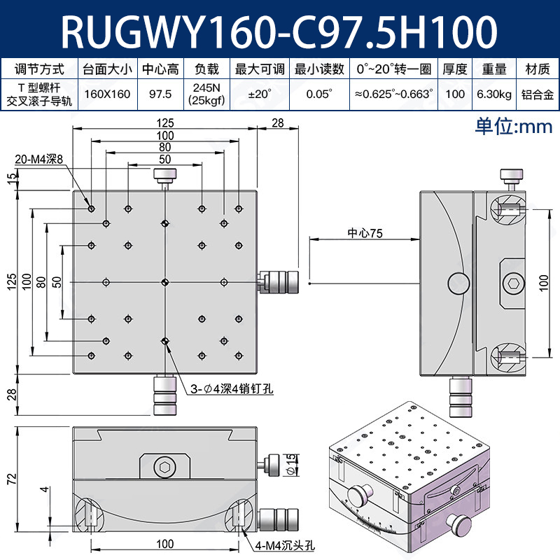 160台面精密手动角位台:RUWX/Y160