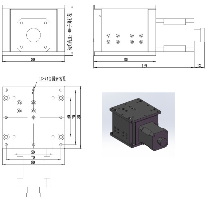 RUVA80XX-BC系列电动升降台为解决客户驱动电机外置需求,特别是配置加长电机、驱控一体电机或伺服电机,而且精度要求高,负载要求大的使用要求而设计的精密电动升降台。该系列产品主体材料采用硬质铝合金,表面黑色阳极氧化处理。